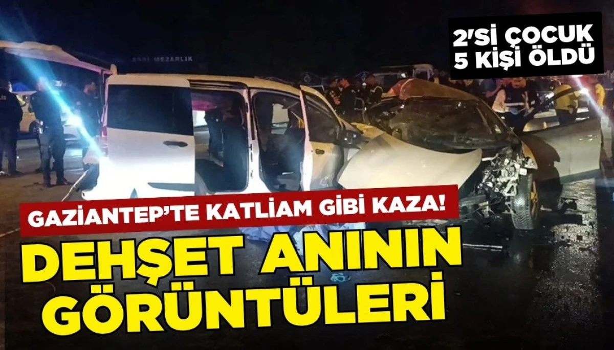 Gaziantep’te iki otomobilin kafa kafaya çarpışması sonucu 5 kişi hayatını kaybetti. Kaza anının görüntüleri ortaya çıktı.