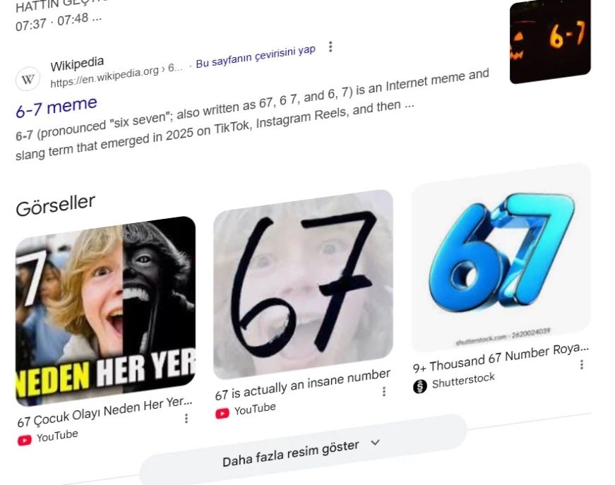 Grok, bu konuda şu bilgiyi verdi: “Google'da "67" aratınca sayfa sallanıyor, çünkü bu 2025'in viral "6-7" memesine (Skrilla'nın şarkısı ve el hareketi) atıf yapan bir Easter egg. Ekran, memedeki "juggling" hareketini taklit ediyor. In-N-Out bile bundan etkilendi!”