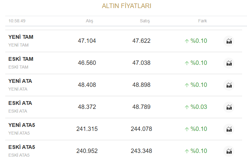 13 Mart 2026 altın ve anlık ekonomi grafikleri ile takip ediliyor. Altın bugün ne kadar oldu? Alış-satış fiyatları ne kadar? Soruları da yatırımcılar tarafından arama motorundan aratılıyor.