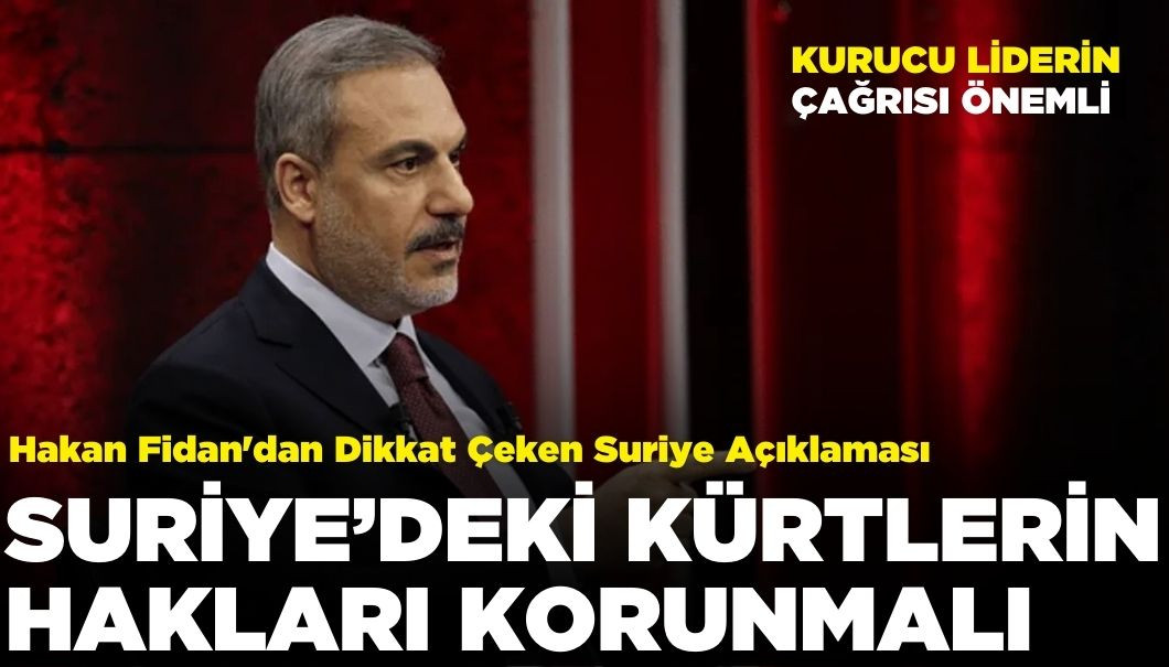 Türkiye’nin Suriye’deki yeni yönetimle ilişkileri çerçevesinde SDG’ye yönelik yaklaşımına da değinen Fidan, "Yeni yönetime telkinimiz, Suriye’deki Kürtlerin haklarının korunması yönünde olmuştur. Bu hem Cumhurbaşkanımız hem de Türkiye için büyük önem taşımaktadır" diye konuştu.