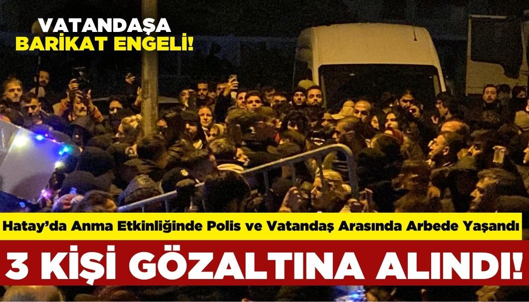 6 Şubat depremlerinden en çok etkilenen illerden biri olan Hatay'da deprem için düzenlenen resmi anma alanına giden bütün giriş çıkışlar barikatlarla kapatıldı. Polis ekipleri ve depremzedeler arasında yaşanan arbedede, 3 kişi gözaltına alındı.
