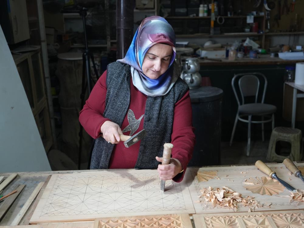 Eşinden büyük destek gördüğünü dile getiren Öztürk, “Oymalı kapı, masa, sehpa ve sandık gibi pek çok ürünü birlikte hazırladık. Eşim kapıların diğer kısımlarını yaparken ben de oymalarını yapıyorum. Mobilyaların oymalarını da yine ben yapıyorum. Bu şekilde birlikte çalışıyoruz” diye konuştu.