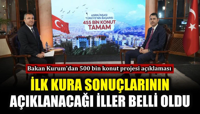 ‘Yüzyılın Konut Projesi’ olarak tanımlanan konutlar için ilk kura bölgesini ve tarihini açıklayan Çevre, Şehircilik ve İklim Değişikliği Bakanı Murat Kurum, ilk kuranın Adıyaman'daki konutlar için çekileceğini söyledi.