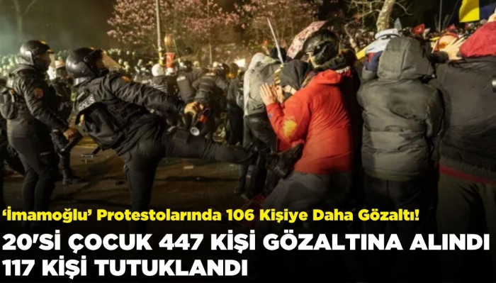 İBB Başkanı Ekrem İmamoğlu'nun tutuklanmasının ardından alevlenen protestolar sürüyor. İstanbul Emniyet Müdürlüğü, İstanbul'da 106 kişinin daha gözaltına alındığını açıkladı.