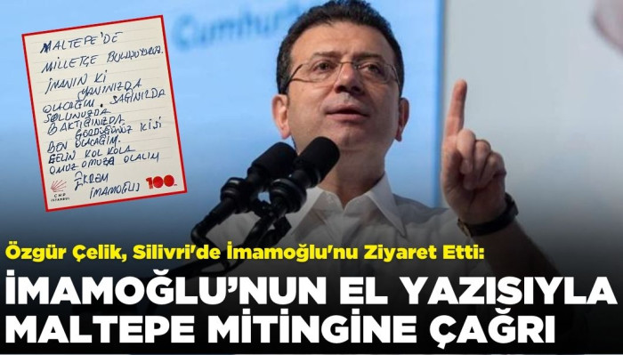 Silivri Cezaevi'nde tutulan İBB Başkanı ve CHP'nin cumhurbaşkanı adayı Ekrem İmamoğlu, kendi el yazısıyla vatandaşları Maltepe mitingine davet etti. İmamoğlu'nun mesajını CHP İstanbul İl Başkanı Özgür Çelik, X hesabından paylaştı.