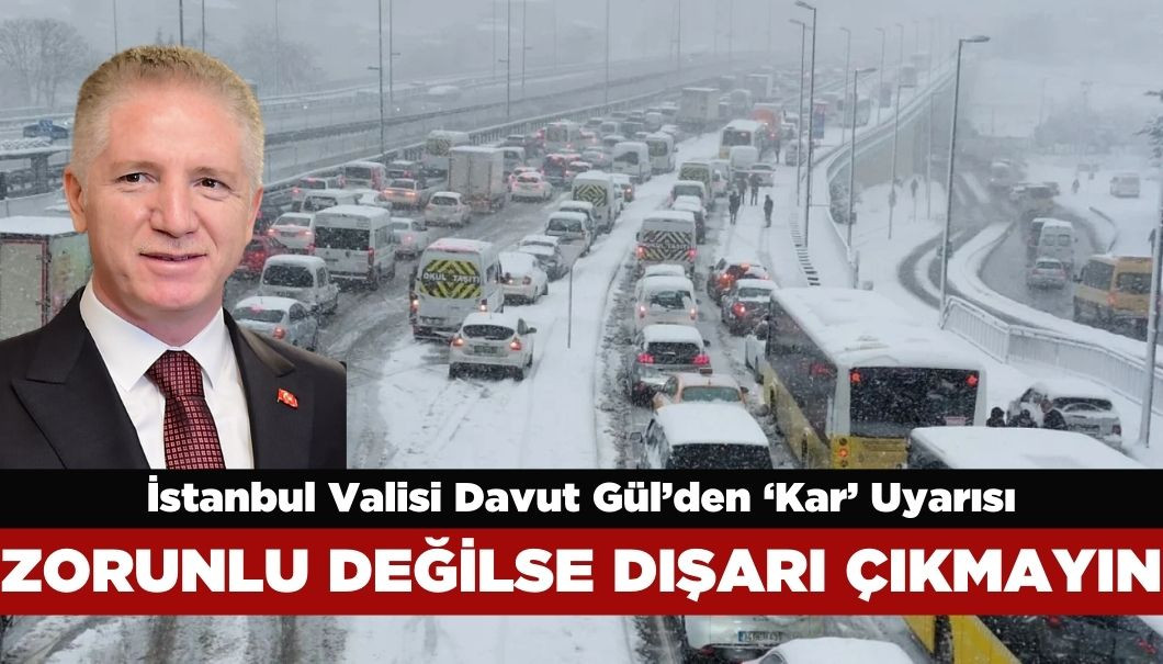 İstanbul Valisi Davut Gül, sosyal medyadan vatandaşları uyardı. Zorunlu olmadıkça dışarı çıkılmaması gerektiğini belirten Gül, toplu taşıma araçlarının tercih edilmesini istedi. Buzlanma ve don olaylarına karşı tedbir alınması gerektiğini de ifade eden Vali Gül, sürücüleri kış lastiği kullanımı konusunda uyardı.