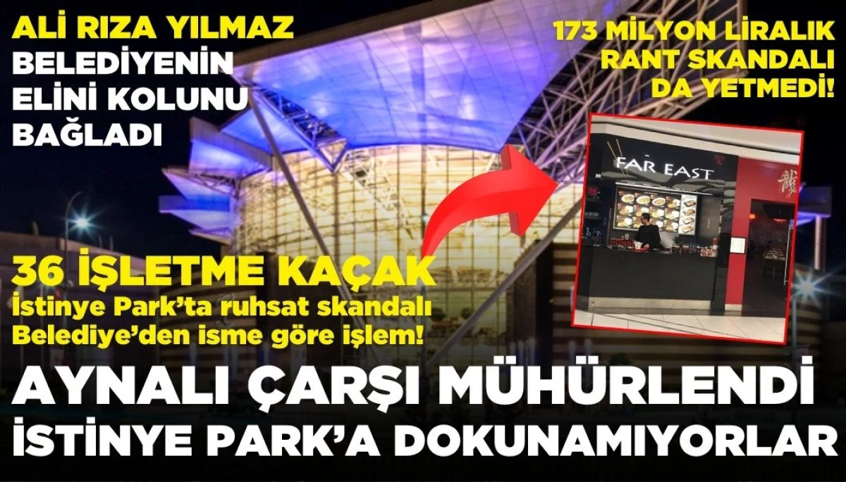 Sarıyer Belediyesi’nin 173 milyon lira gibi devasa bir rakamdan vazgeçerek kolaylık sağladığı İstinye Park, her şeye rağmen kaçak işletmelerine ruhsat alamadı. Haberimiz üzerine Aydın Özgültekin’in sahibi olduğu Aynalı Çarşı’yı apar topar mühürleyen belediye yönetiminin İstinye Park’a neden müdahale etmediği ise akıllara “ Ali Rıza Yılmaz isminden çekinildiğini" getirdi.