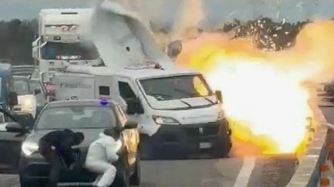 Zırhlı nakil aracını durdurmak isteyen saldırganlar park halindeki başka bir aracı ateşe verdi. Bu sayede yolu kapatan soyguncular, aracı soyabilmek için patlayıcı da kullandı.