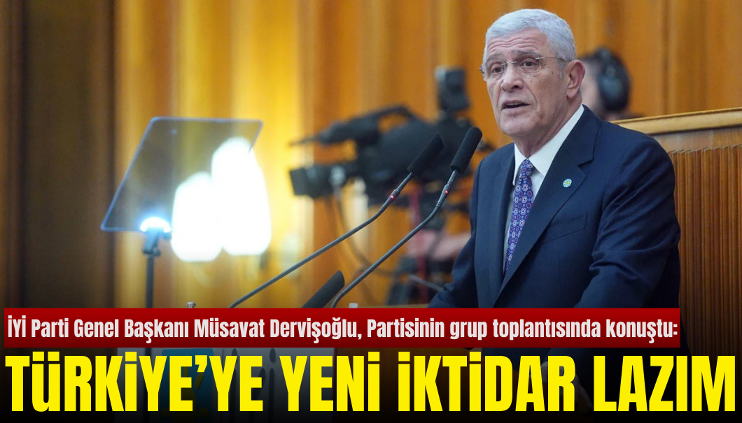 Partisinin grup toplantısında konuşan İYİ Parti lideri Müsavat Dervişoğlu, Türkiye'ye yeni bir iktidar gerektiğinin altını çizdi. Dervişoğlu, iktidarın yeni anayasa yapmak istemesinin esas amacının Erdoğan'a "ömür boyu tek adamlık sağlamak" olduğunu söyledi.