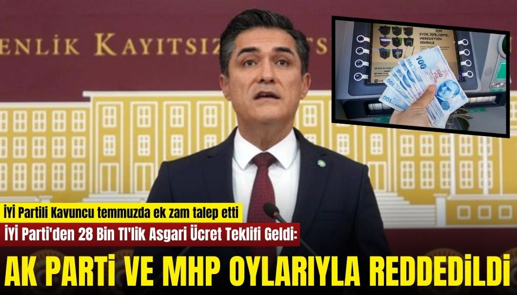 İYİ Parti Grup Başkanvekili Buğra Kavuncu, Meclis'te düzenlediği basın toplantısında, 2025 yılının ilk altı ayı için asgari ücretin 28 bin TL’ye çıkartılması ve temmuz ayında da ilave zam yapılması gerektiğini ifade etti. Teklif AK Parti ve MHP'nin oylarıyla reddedildi.