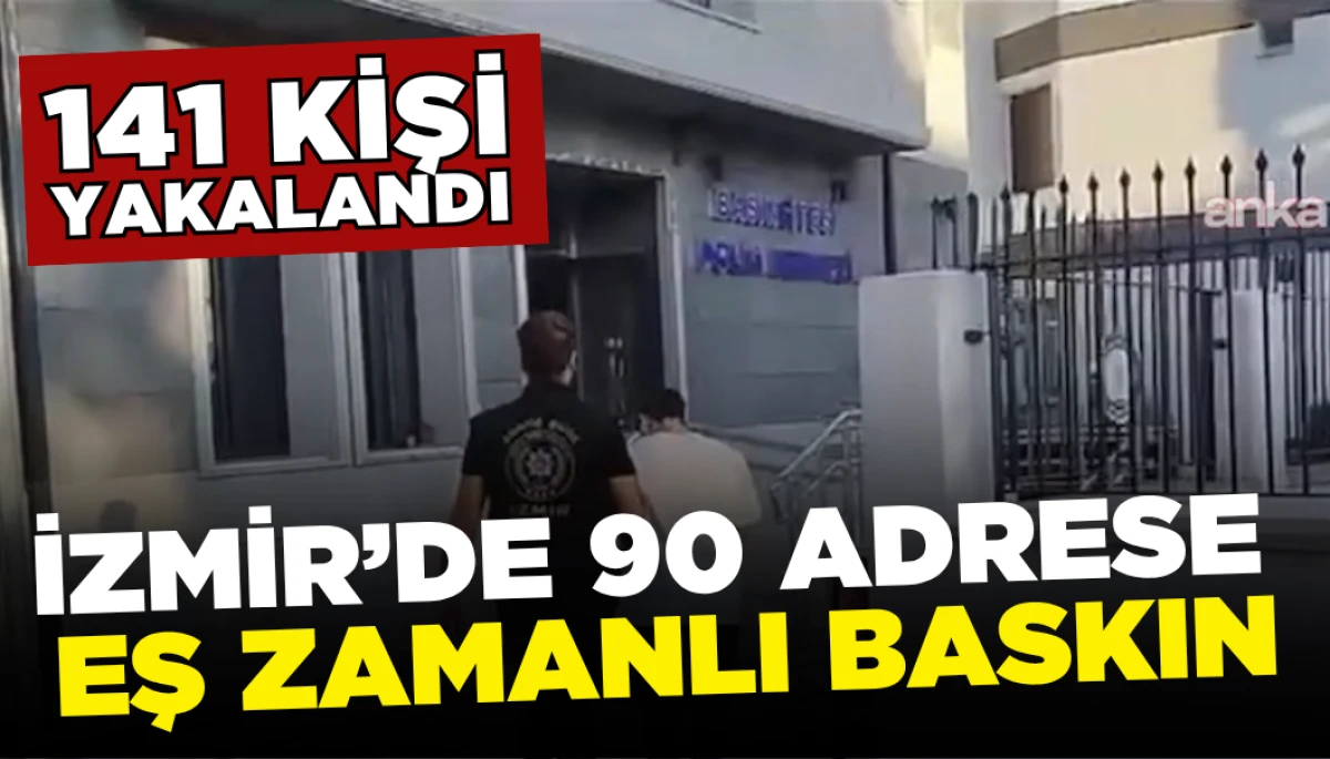 İzmir Emniyet Müdürlüğü ekipleri, 27 Haziran Cuma sabahı, il genelinde 90 noktaya eş zamanlı şafak operasyonu düzenledi. 141 kişi yakalandı.