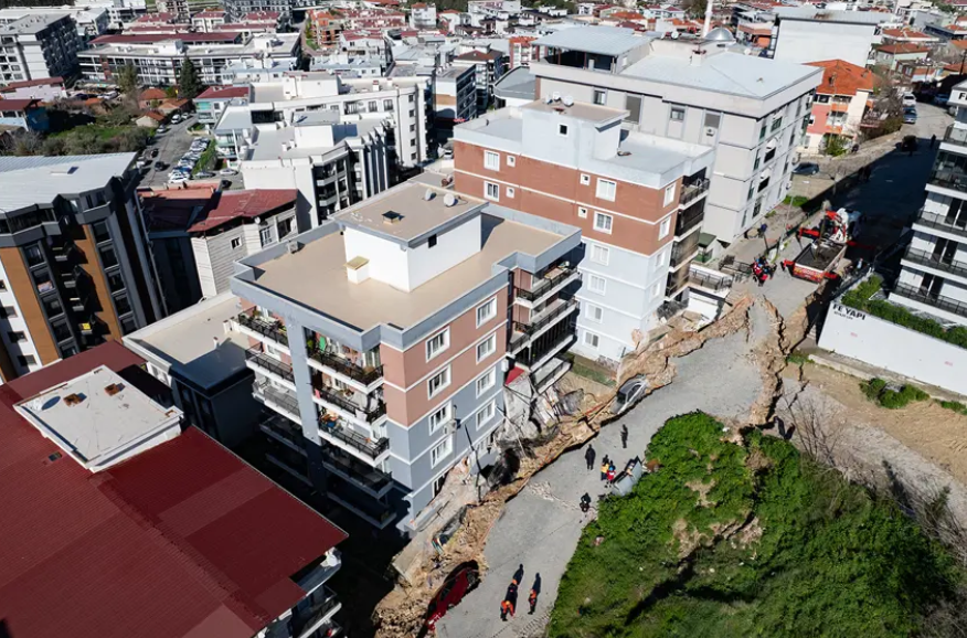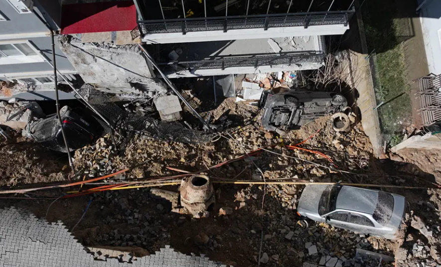 Evi hasar gören bina sakinlerinden Gözde Aktaş, verdiği açıklamada saat 04.00 sıralarında büyük bir sesle uyandıklarını, binanın giriş kısmının çökmesi nedeniyle komşularının penceresinden dışarıya çıkabildiklerini ifade etti. Aktaş, 2022 yılında istinat duvarını yapan firmaya dava açtıklarını da ekledi.
