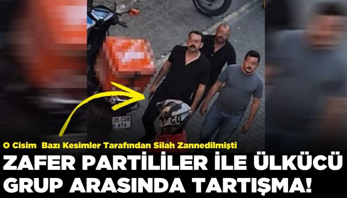 İzmir'de Zafer Partililer ile ülkücü grup arasında çıkan kısa süreli gerginlik polisin müdahalesiyle sonlandı. Bazı sosyal medya hesaplarında, ülkücü gruptan bir kişinin elindeki cismin 'silah' olduğu öne sürülürken, güvenlik kamerası görüntüleri incelenince söz konusu cismin telefon olduğu ortaya çıktı.