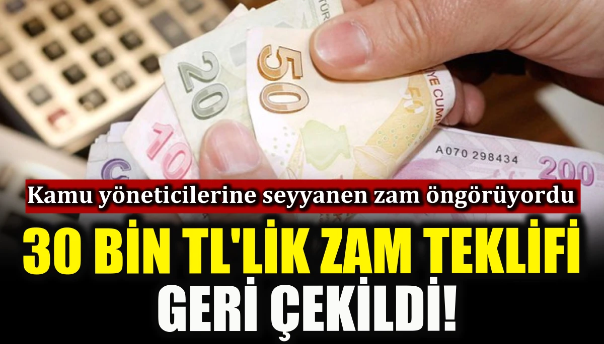 Kamu yöneticileri ve kariyer uzmanlarına önerilen 30 bin TL’lik seyyanen zam teklifi, TBMM’de iptal edildi.