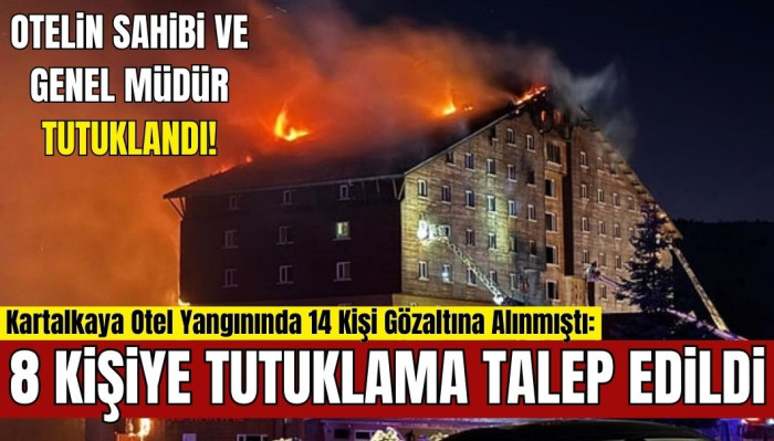 Kartalkaya Kayak Merkezi'nde 78 kişinin yaşamını yitirdiği ve çok sayıda kişinin yaralandığı Grand Kartal Otel yangınına ilişkin, gözaltına alınan 14 şüpheliden 8'i tutuklandı. Otel sahibi Halit Ergül'ün de bulunduğu 8 kişi tutuklama talebiyle adliyeye sevk edildi.