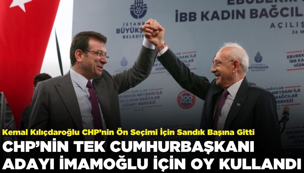 Eski CHP Genel Başkanı Kemal Kılıçdaroğlu, ön seçim için sandık başına giderek, CHP'nin tek Cumhurbaşkanı adayı olan İBB Başkanı Ekrem İmamoğlu'na oy verdi.