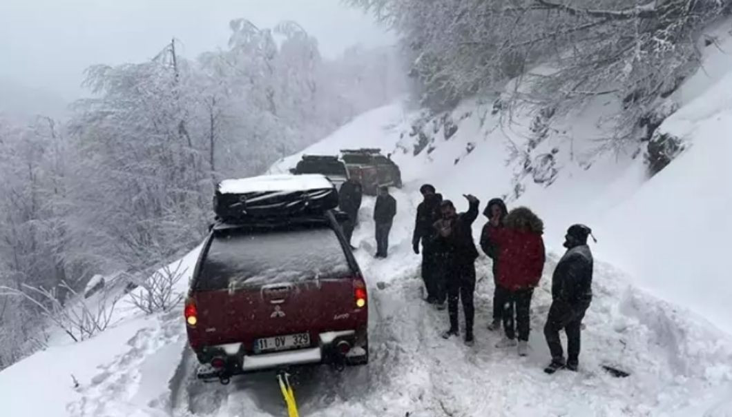 Kartepe ilçesi Kuzuyayla Tabiat Parkı'na doğru yola çıkanların içinde bulunduğu 5 araç kara saplandı. İhbar üzerine bölgeye sevk edilen ekipler, iş makineleriyle kara saplanan araçları çıkardı. Araçlarda mahsur kalan 12 kişi ise kurtardı. Kent genelinde 440 personel 235 araç ile gece gündüz iki vardiyalı çalışan ekipler, yollarda tuzlama ve kar küreme çalışmalarını sürdürüyor. Öte yandan, kar yağışıyla beyaza bürünen İzmit ilçesindeki Umuttepe mevkisi dron ile görüntülendi.