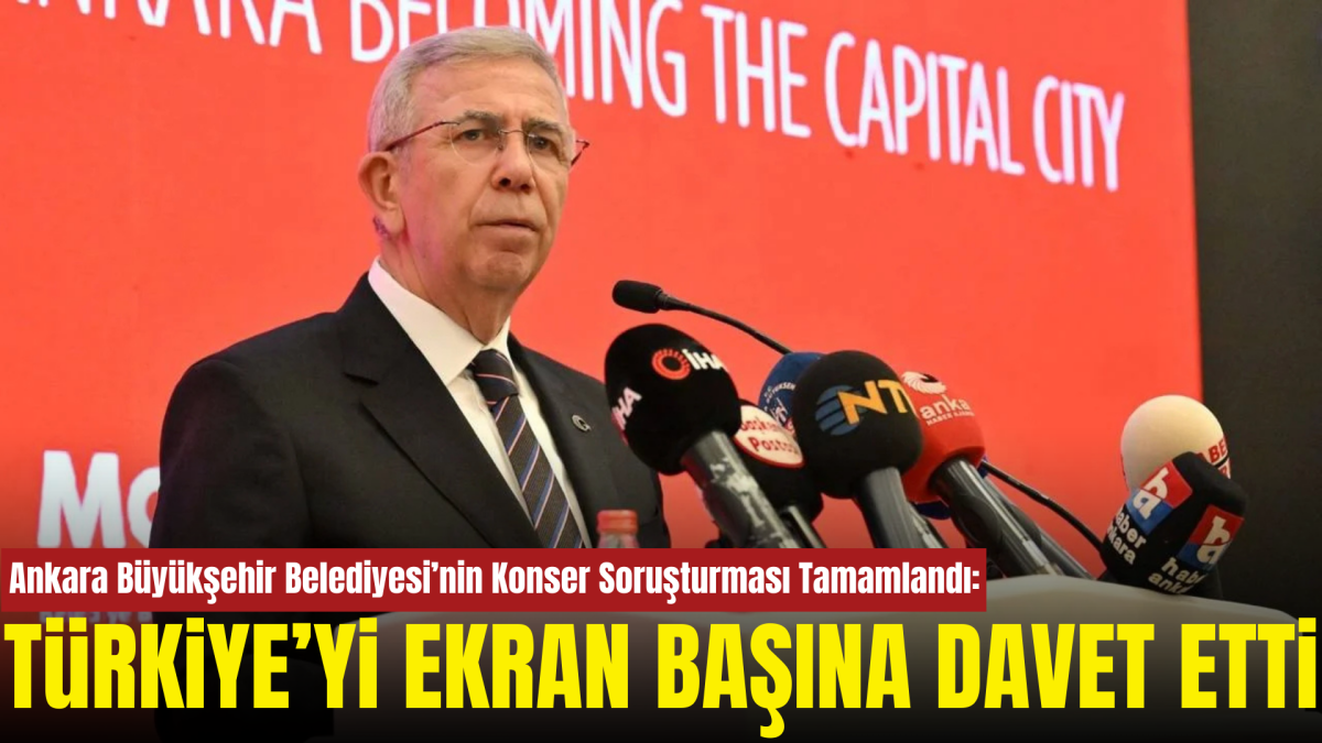 Mansur Yavaş, Ankara Büyükşehir'in on milyonlarca liralık konserler düzenlediği iddiasına ilişkin soruşturmanın tamamlandığını duyurdu. Yavaş, "BütünTürkiye'nin de izlemesini isterim açıkçası. Canlı yayınlıyoruz, her şeyde olduğu gibi. Bir görsünler bakalım, hesap kitap neymiş" dedi.