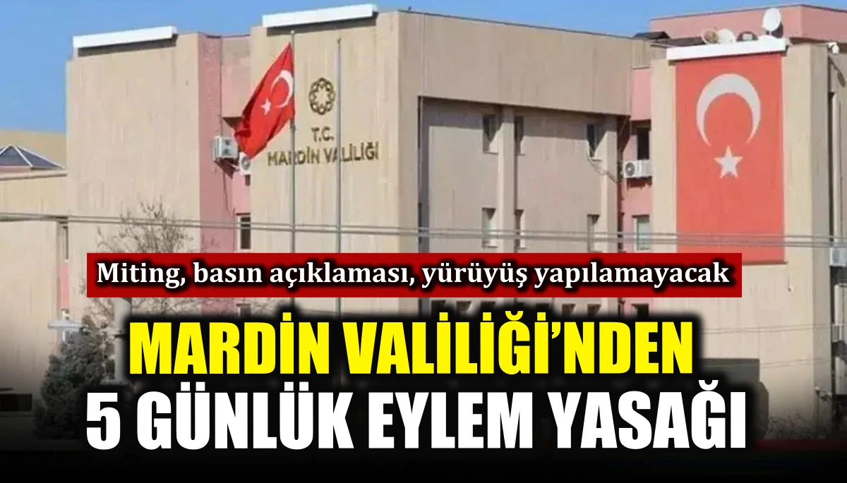 Mardin Valiliği, kent genelinde valilik ve kaymakamlıkların uygun göreceği etkinlikler dışında, açık alanlarda toplanma, yürüyüş, basın açıklaması, miting, stant açma, çadır kurma ve pankart asma gibi tüm eylemlerin 5 gün boyunca yasaklandığını duyurdu.
