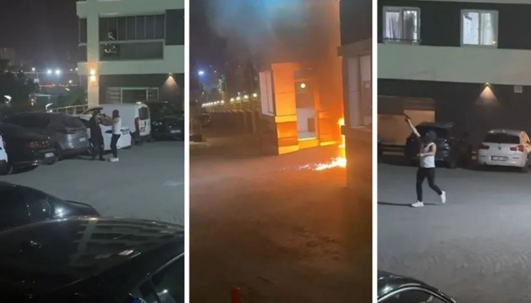 Adana Çukurova ilçesi Huzurevleri Mahallesi'ndeki lüks bir sitede meydana gelen olayda, yüzü maskeli kişi, elinde tabancayla site bahçesine girdi. Yere benzin döküp ateşe veren kimliği belirsiz şüpheli, ismini söylediği bir kişinin dışarı çıkmasını istedi. Tabancasını kadın güvenlik görevlisine doğrultan şüpheli, kişiyi çağırmasını isteyerek tehdit etti.
