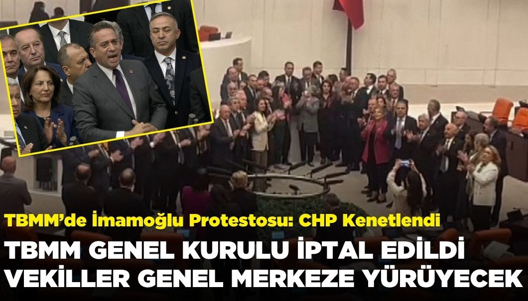 İstanbul Büyükşehir Belediye (İBB) Başkanı Ekrem İmamoğlu’nun, İBB’ye yönelik başlatılan iki ayrı soruşturma kapsamında gözaltına alınması, ülke genelinde siyasi gerilimi tetikledi. CHP’li milletvekilleri, Meclis Genel Kurulu’nda İmamoğlu’nun gözaltına alınmasını protesto etti. Meclis'e 20 dakika ara verilmişti ancak TBMM genel kurulu olağanüstü gündem nedeniyle iptal edildi. Sözcü'nün haberine göre ise CHP'li vekiller TBMM'den CHP Genel Merkezi'ne yürüyecek. Meclis’teki protestolar sırasında CHP'li vekillerin "Hukuk, Adalet, Demokrasi" sloganları attığı görüldü. Protestonun ardından muhalefet partileri ortak bir açıklama yaparak, İmamoğlu ve gözaltına alınan diğer isimlerin serbest bırakılması çağrısında bulundu.