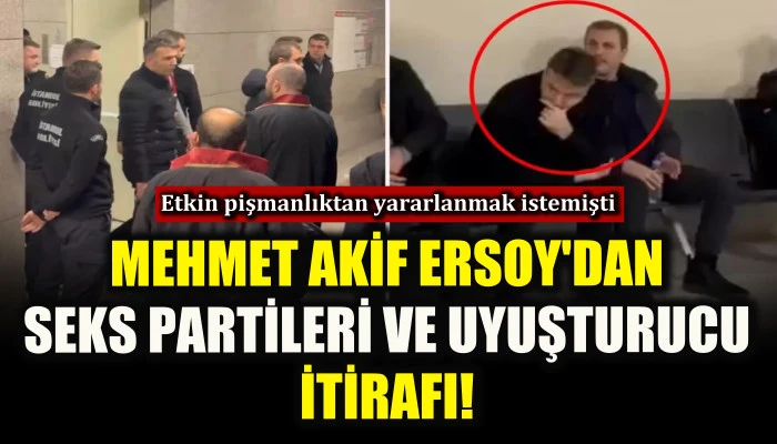 Mehmet Akif Ersoy, avukatı vasıtasıyla etkin pişmanlık hükümlerinden faydalanma talebiyle İstanbul Cumhuriyet Başsavcılığı'na başvurdu. "Uyuşturucu kullanımı" ve "cinsel ilişkiden menfaat sağlama" iddiasıyla tutuklanan Ersoy, bu talep üzerine Çağlayan Adliyesine getirildi. Ersoy, yaklaşık 3 saat boyunca ifade verdi.