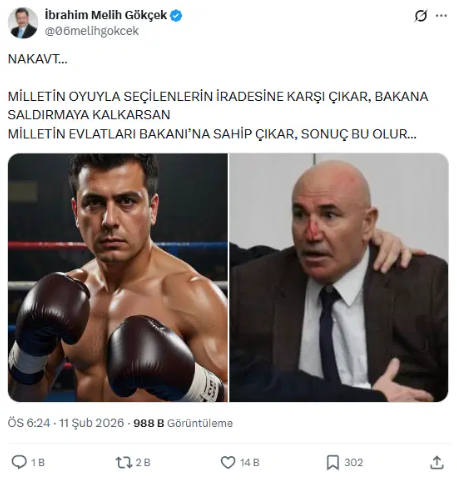 Gökçek, paylaşımda oğlunu boksör olarak gösterirken, Tanal’ın ise darbedildiği fotoğrafını koyarak, “Nakavt... Milletin oyuyla seçilenlerin iradesine karşı çıkar, bakana saldırmaya kalkarsan milletin evlatları bakanına sahip çıkar, sonuç bu olur...” dedi.