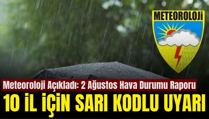Meteoroloji Genel Müdürlüğü (MGM) 2 Ağustos'a ilişkin hava durumu raporunu yayımladı. Son tahminlere göre sıcaklıklar artmaya devam ederken 10 il için ise sarı kodlu uyarı yapıldı.