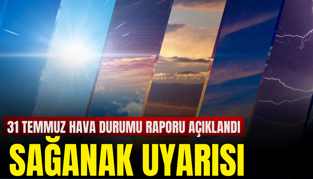 Meteoroloji Genel Müdürlüğü (MGM) tarafından yapılan incelemeler sonucu 31 Temmuz Çarşamba gününe ilişkin hava durumu raporunu yayımladı. Son tahminlere göre İstanbul, Sinop, Trabzon, Bolu, Zonguldak başta olmak üzere birçok il için gök gürültülü sağanak uyarısı yapıldı.