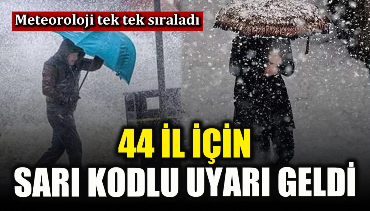 Türkiye’nin büyük bölümünde yağış beklendiğini açıklayan Meteoroloji Genel Müdürlüğü (MGM), 44 il için sarı kodlu uyarı verdi. Peki, hangi şehirler için uyarı yapıldı, hangi bölgelerde kar yağacak? İşte detaylar...