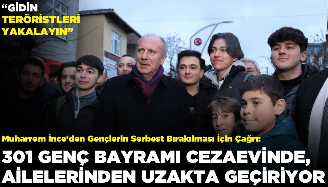 Memleket Partisi Genel Başkanı Muharrem İnce, 'İmamoğlu' protestolarında tutuklanarak, bayramı cezaevinde geçirmek zorunda kalan 301 gencin serbest bırakılması için çağrı yaptı. İnce sosyal medya paylaşımında, "Gidin teröristleri yakalayın, gençleri serbest bırakın!" dedi.