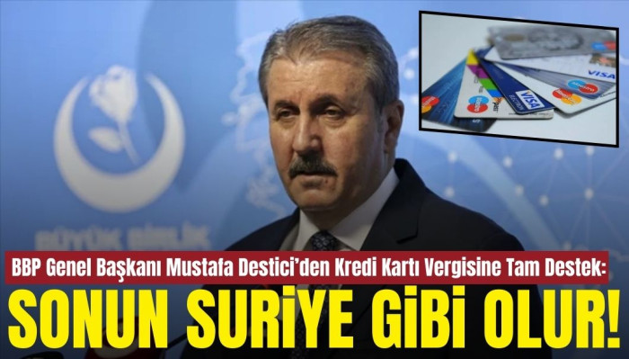 Büyük Birlik Partisi (BBP) Genel Başkanı Mustafa Destici, yaptığı basın açıklamasında kredi kartı limitlerinden savunma sanayii için kesilecek vergilere karşı çıkanlara sert sözler sarf etti. Destici, "100 bin liranın üzerinde kredi kartı kullanan devlete 750 lira verecek, bu da savunma sanayii için. Ver kardeşim, vermezsen sonun Suriye, Irak, Filistin gibi olur!" ifadelerini kullandı.