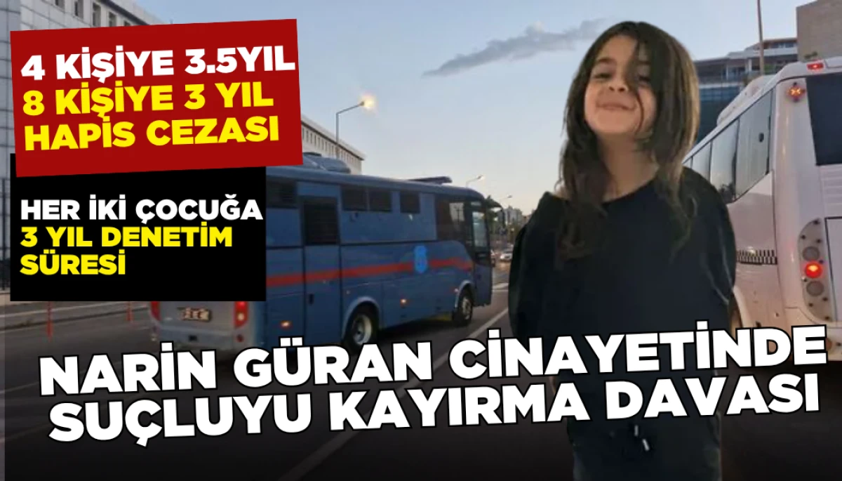 Narin Güran cinayeti ile ilgili 15 sanık için mahkeme kararını verdi. Aile fertlerinin yargılandığı davada 4 kişiye 3.5 yıl, 8 kişiye 3 yıl hapis cezası verildi