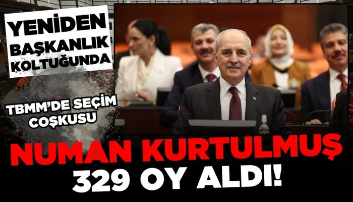 TBMM'nin başkanlık seçiminde Genel Kurul'da yapılan üçüncü tur oylamada, AK Parti’nin adayı Numan Kurtulmuş, 329 oy alarak yeniden Meclis başkanı seçildi. Kurtulmuş, Meclis üye tam sayısının salt çoğunluğu olan 301 oyu geçerek yeniden başkanlık koltuğuna oturdu.