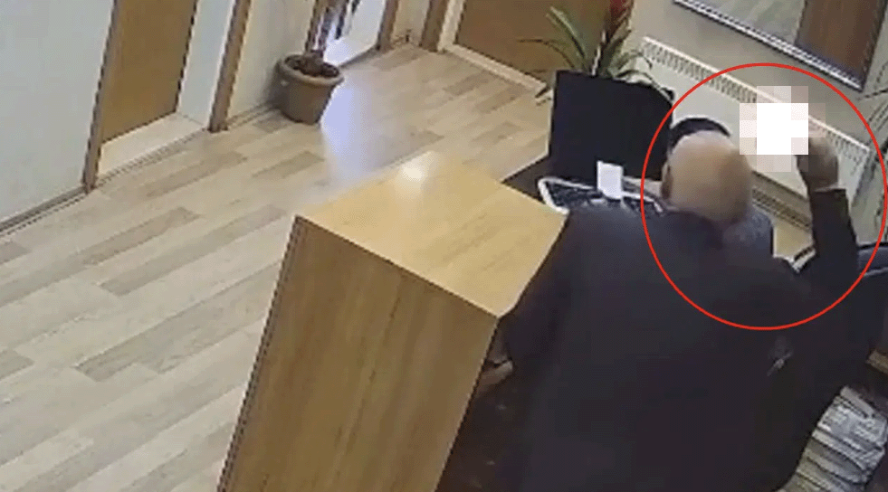 Olayın yaşandığı an ise belediyeye ait güvenlik kamerası tarafından kaydedildi. Görüntülerde, Y. D. isimli şahsın sekreterlik odasına geldiği, bir süre sonra ceketinin cebinden çıkardığı satırın keskin kısmıyla A.D’nin başına 2 kez vurduğu anlar yer alıyor. Saldırıyı gerçekleştiren şahsın ikna edilerek güçlükle elinden satırın alındığı anlar da görüntülere yansıdı.