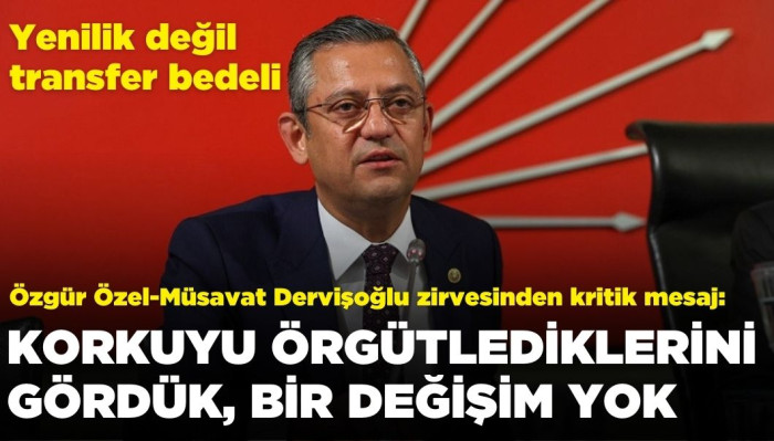 AK Parti'nin kongre sürecine ilişkin konuşan Özel, "Eskiden olduğu gibi korkuyu örgütlediklerini gördük, tehditleri gördük, sivil toplum örgütlerine üstü kapalı şantajları gördük de yeni ne gördük? ‘Belki kadrolarda bir şey görürüz’ diye insanlar baktılar ve başkasının eskisinden yeni olmaz" dedi.
