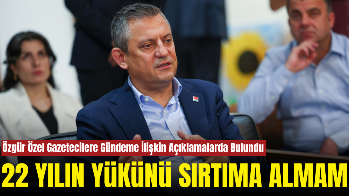CHP Genel Başkanı Özgür Özel, gazetecilerle yaptığı görüşmede gündeme ilişkin soruları yanıtladı. Özel'in "22 yılın yükünü sırtıma almam" şeklindeki açıklaması dikkat çekti.