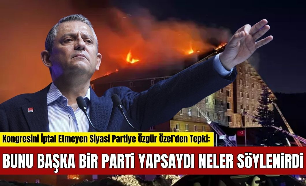 CHP Genel Başkanı Özgür Özel, Bolu'nun Kartalaya ilçesinde meydana gelen yangın faciası ile ilgili bölgede basın açıklamasında bulundu. Bir muhabirin, siyasi bir partinin kongresini iptal etmemesine ilişkin sorusuna, "Bunu bir başka parti yapsaydı neler söylenirdi ve ne konuşulurdu, ne yapılırdı." yanıtını verdi.