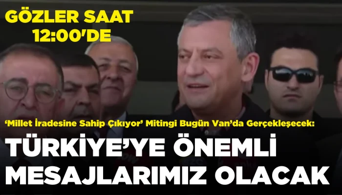 CHP Genel Başkanı Özgür Özel saat 12.00'de gerçekleştirecekleri "Millet İradesine Sahip Çıkıyor" mitingi için Van'a geldi. Özel, "Van'dan önemli Türkiye'ye önemli mesajlarımız olacak" dedi.