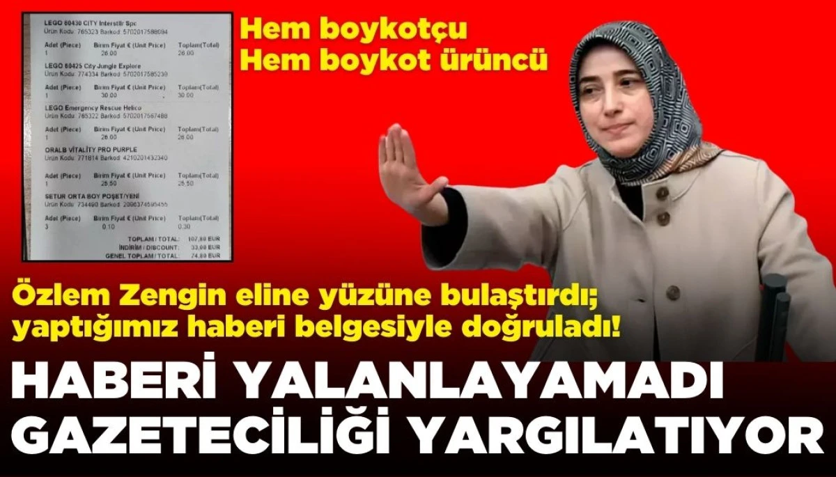 Kamuya açık alanda, kamuya mal olmuş bir isim olan Özlem Zengin’in fotoğrafı üzerinden KVKK ihlali iddiasıyla İmtiyaz Sahibimiz Erhan Vergili ve Haber Müdürümüz Aykut Metehan yargılanıyor. Meclis’te İsrail boykotu konusunda çağrılar yapan iktidar partisinin Grup Başkanvekili’nin de buna dikkat etmesi gerekiyor. Haberimiz ise Özlem Zengin’in ‘hoca verir talkımı kendi yer salkımı’ minvalinde bu tutarsız hareketini gözler önüne serdi. Özlem Zengin’in bu zikzak siyaseti hem kamuoyunun hem de partisine destek veren milyonlarca AK Partili’nin tepkisini çekti.