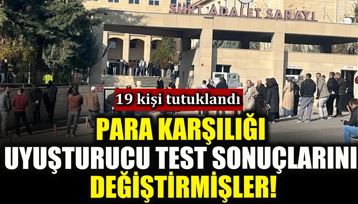 Siirt Eğitim ve Araştırma Hastanesi’nde, 8’i sağlık çalışanı 30 şüpheliden 19’u, uyuşturucu testlerini değiştirmek suçlamasıyla tutuklandı.