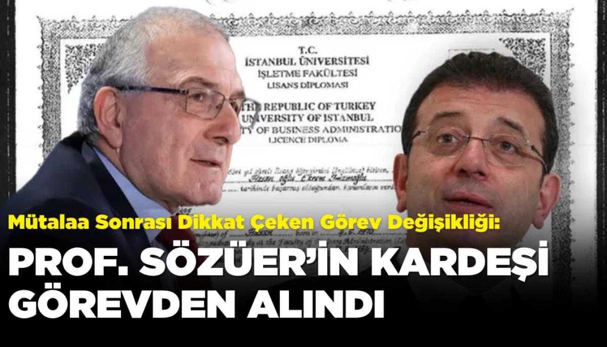Ceza hukukçusu ve akademisyen Prof. Dr. Adem Sözüer’in, tutuklu bulunan İBB Başkanı Ekrem İmamoğlu’nun diplomasının iptalinin hukuka aykırı olduğu yönünde hazırladığı mütalaayla gündeme gelmesinin ardından, kardeşi Dr. Abdülvahit Sözüer görevden alındı. İstanbul İl Sağlık Müdürlüğü'nde Kamu Hastaneleri Hizmetleri Başkanı olarak görev yapan Dr. Sözüer, bu görevinden alınarak müşavirlik pozisyonuna atandı.