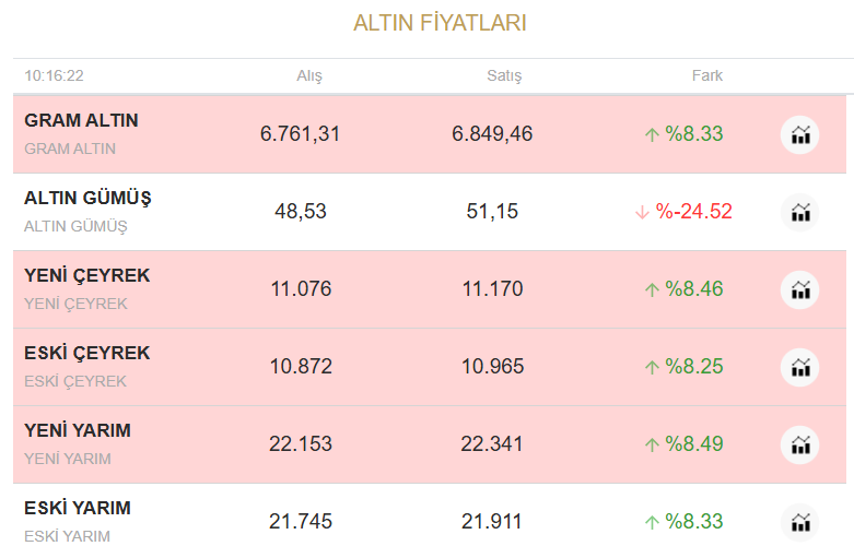 Küresel yükselişin etkisiyle yurt içinde de altın fiyatları rekor seviyelere ulaştı. Gram altın 6.737 TL seviyesini aşarak tüm zamanların en yüksek seviyesini gördü.