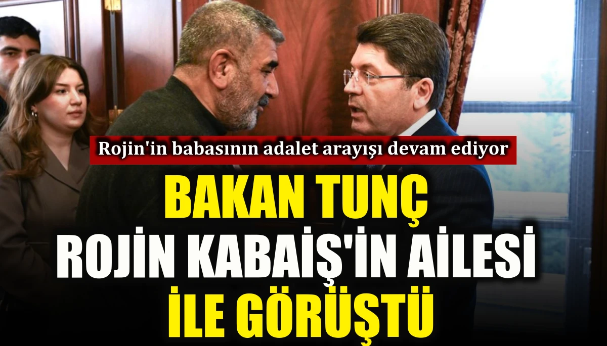 Van'da 27 Eylül 2024 tarihinde kaybolan ve 18 gün sonra cansız bedeni Van Gölü kıyısında bulunan 21 yaşındaki üniversite öğrencisi Rojin Kabaiş'in babası Nizamettin Kabaiş, ailesi ve avukatı İrem İlhan ile birlikte Adalet Bakanı Yılmaz Tunç'u ziyaret etti.