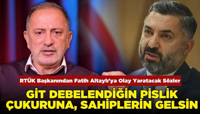 RTÜK Başkanı Ebubekir Şahin, gazeteci Fatih Altaylı'ya "Git debelendiğin pislik çukuruna, sahiplerin gelsin" dedi.