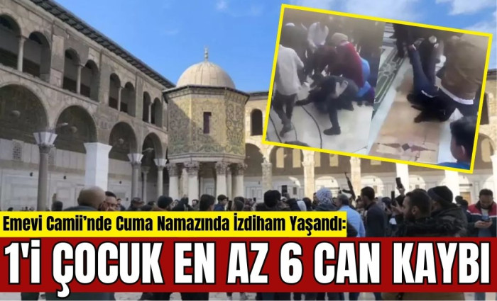 Suriye'nin başkenti Şam'daki Emevi Camii'nde, Esad rejiminin devrilmesinin ardından 5. cuma namazı sırasında izdiham yaşandı. İzdihamda 1'i çocuk en az 6 kişinin can verdiği öğrenilirken, çok sayıda yaralının olduğu aktarıldı.