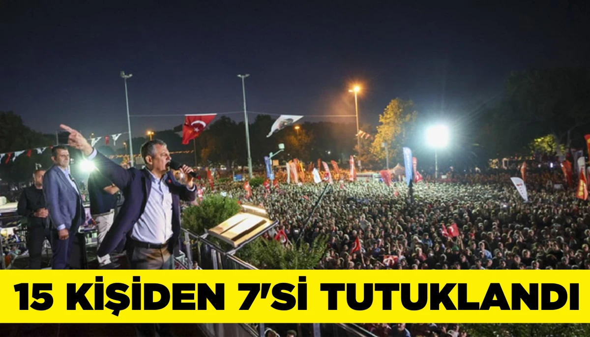 İstanbul Saraçhane’de CHP mitingi sonrası gözaltına alınan 42 kişiden 7’si “Cumhurbaşkanına hakaret” ve “toplantı ve gösteri yürüyüşleri kanununa muhalefet” suçlarından tutuklandı, 19 kişi ise adli kontrolle serbest bırakıldı.