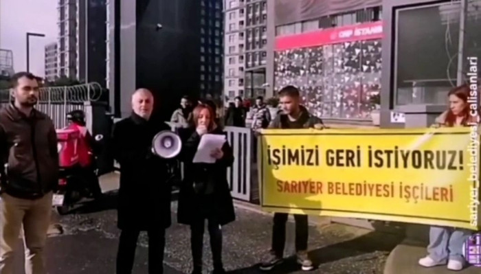 Oktay Aksu yönetimi tarafından Sarıyer Belediyesi'nden kod 26 ile işten atılan işçiler, CHP İl Başkanlığı önünde protesto gerçekleştirdi.