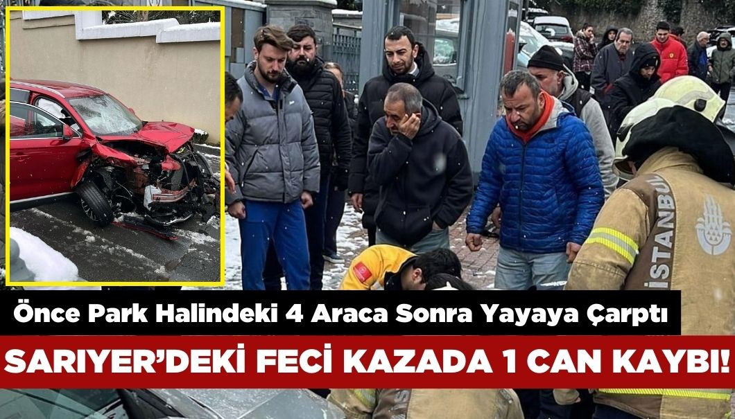 İstanbul'un Sarıyer ilçesinde park halindeki 4 araca çarpan S.B., daha sonra yolda yürüyen R.P.'ye çarparak durabildi. Feci kazada R.P. yaşamını yitirdi.