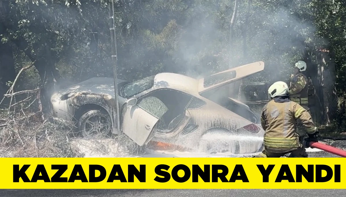 İstanbul Sarıyer’in Uskumruköy Mahallesi’nde Porsche marka bir otomobil kontrolden çıkarak yeşil alana savruldu. Sürücü Uğur D., kazayı yara almadan atlattı. Ancak araç kısa süre sonra alev aldı.